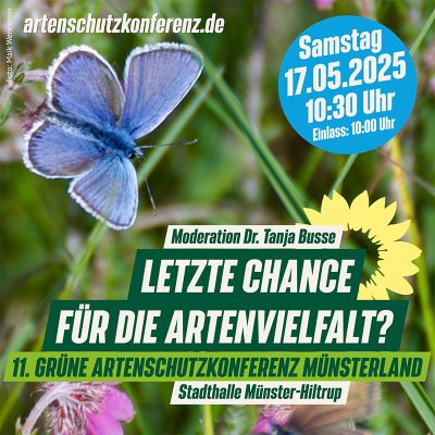 Letzte Chance für die Artenvielfalt? Umweltbildung und wissenschaftliche Kommunikation als ein Schlüssel zum Erfolg!“ Samstag, 17. Mai in Münster- Hiltrup, Stadthalle, Westfalenstraße 197, Zeit 10.30 -16.30 h Einlass 10.00…
